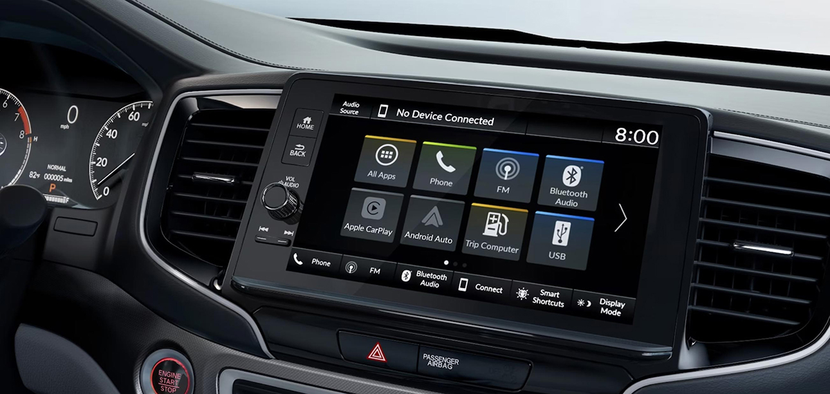 1 Depending on use, Apple CarPlay can share certain user and vehicle information (e.g., vehicle location, speed, and other operating conditions) with the connected iPhone. See Apple's privacy policy for details regarding Apple's use and handling of data uploaded by CarPlay. Use of CarPlay is at user's own risk, and is subject to agreement to the CarPlay terms of use, which are included as part of the Apple iOS terms of use. CarPlay vehicle compatibility is provided "as is", and Honda cannot guarantee CarPlay operability or functionality now or in the future due to, among other conditions, changes in CarPlay software/Apple iOS, service interruptions, or incompatibility or obsolescence of vehicle-integrated hardware or software. See dealer for details. Only use CarPlay when conditions allow you to do so safely. Apple CarPlay is a registered trademark of Apple Inc.